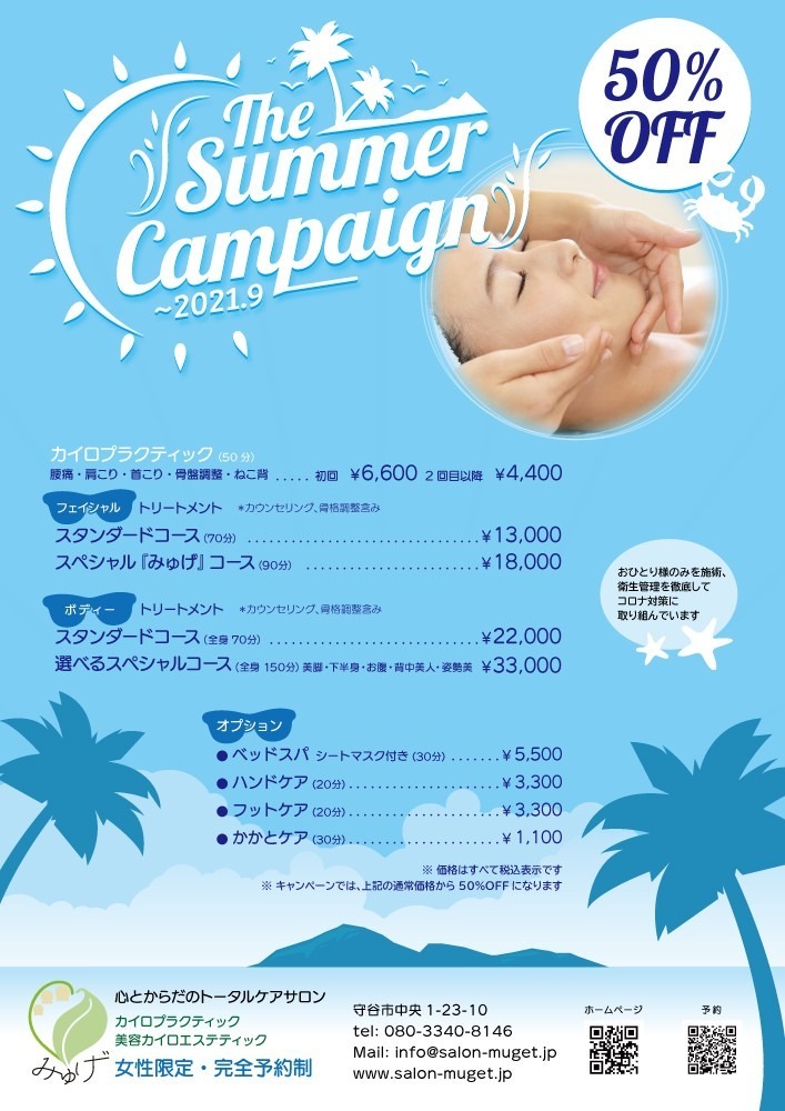 「みゅげ」では夏のキャンペーンを9月いっぱい継続です。