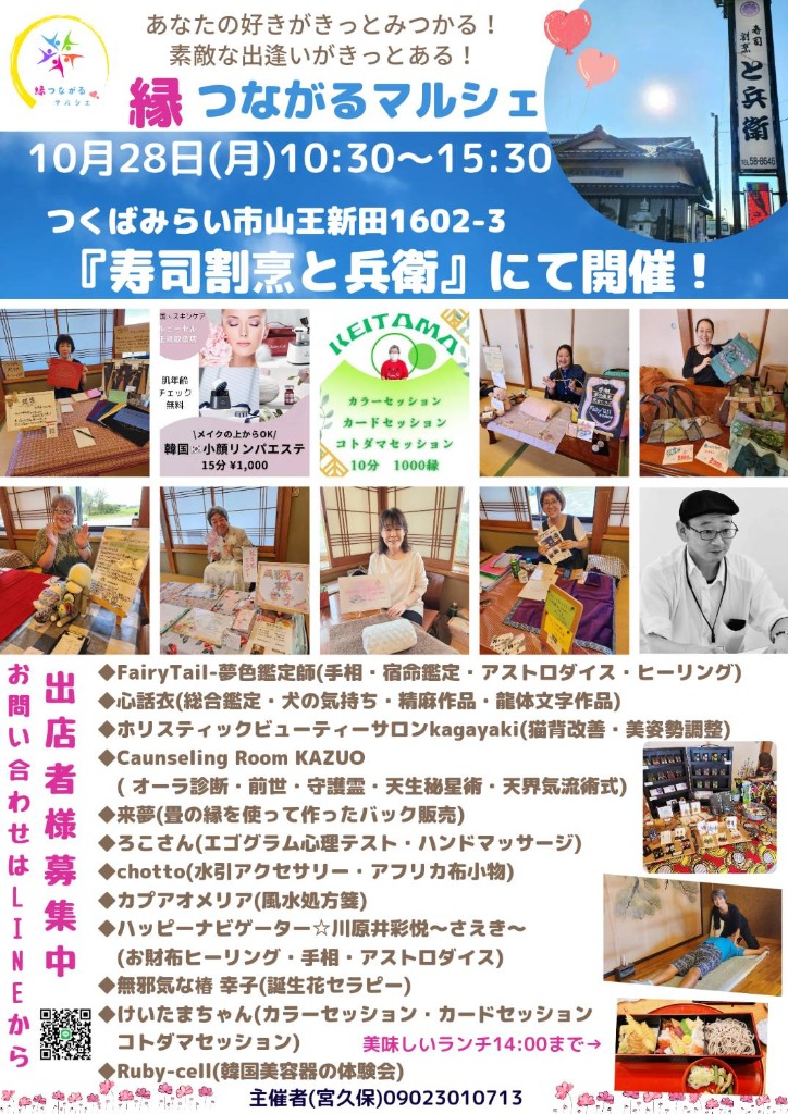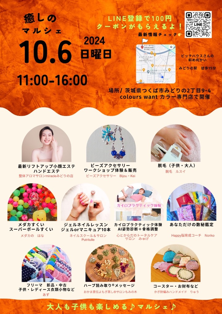10月6日には、つくば市みどりのの美容室で「癒しのマルシェ」に出店します。