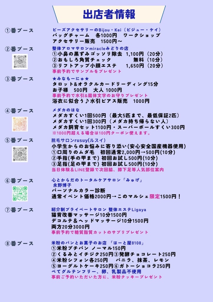 「みゅげ」では守谷市のサロンでも診断は行っておりますが、マルシェ等のイベントではお得価格になります